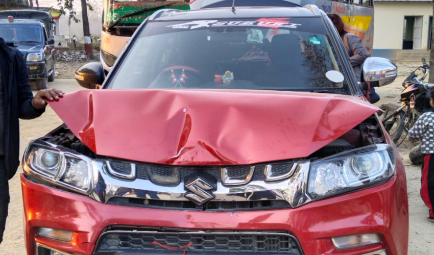 धनगढी । कैलालीको सुखडस्थित घोडाघोडी ताल क्षेत्रमा बस र कार ठोक्किएका छन्। घोडाघोडी ताल क्षेत्रमा टीकापुरदेखि विद्यार्थी ल्याएको ना ६ ख १३३९ नम्बरको बस र बा १७ च ७२५७ नम्बरको कार ठोक्किएका हुन्।