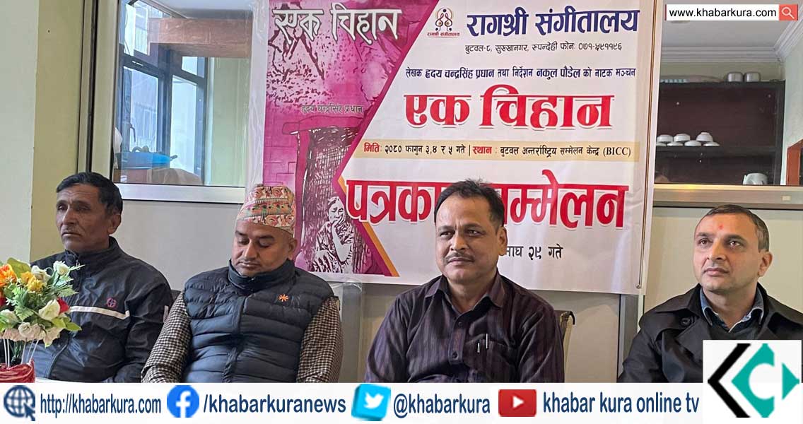 बुटवल-८ सुख्खानगरस्थित रागश्री संगीतालयको आयोजनामा हुन लागेको मञ्चनको तयारी पूरा भएको संगीतालयका व्यवस्थापन सुरेश सेञ्चुरीले पत्रकार सम्मेलनमार्फत जानकारी दिए । हृदयचन्द्र सिंह प्रधानको लेखन रहेको नाटकको निर्देशन नकुल पौडेलको रहेको छ ।