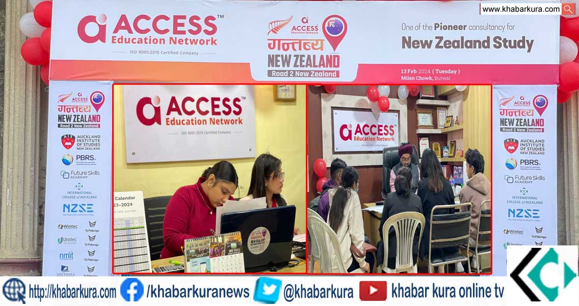 बुटवल । एक्सेस एजुकेशन नेटवर्क प्रालिले नेपाली विद्यार्थीलाई लक्षित गरी गन्तव्य न्यूजिल्याण्ड, रोड टु न्यूजिल्याण्ड कार्यक्रम गरेको छ । १९ वर्ष अघि स्थापना र काठमाण्डौसहित देशका मुख्य मुख्य शहरहरुमा ७ वटा शाखा रहेको एक्सेस एजुकेशनले नेपाली विद्यार्थीलाई न्यूजिल्याण्ड, अष्टे«लिया, क्यानडा, युके र अमेरिकामा अध्ययनका लागि पठाउन सहजिकरण गर्दै आइरहेको छ ।