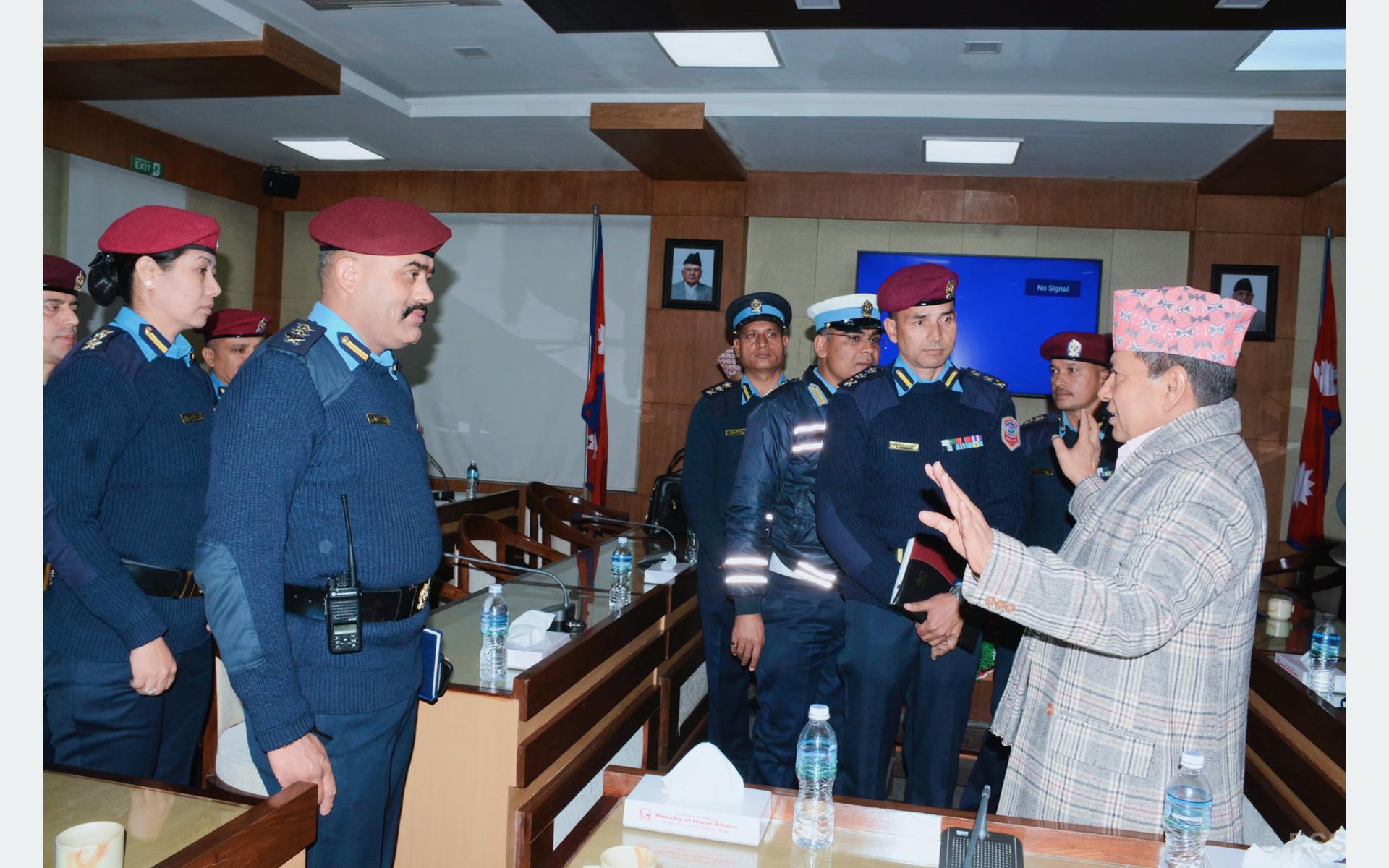 काठमाडौं । उपप्रधानमन्त्री एवं गृहमन्त्री नारायणकाजी श्रेष्ठले दबाब र प्रभावमुक्त भएर कानुनबमोजिम प्रशासनिक र सुरक्षा चुनौती सामना गर्न प्रहरी अधिकारीहरुलाई निर्देशन दिएका छन् ।
