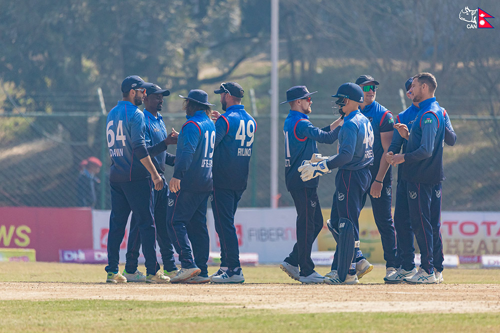 नेपालका भीम सार्कीले सर्बाधिक ४४ रन बनाएका थिए । त्यस्तै गुलशन झाले २१, कुशल मल्लले १५, पवन सराफले १२, अनिल शाहले ८, करण केसीले १६, आसिफ सेखले ४, सोमपाल कामीले २, कप्तान रोहित पौडेलले १ रन बनाएका थिए ।