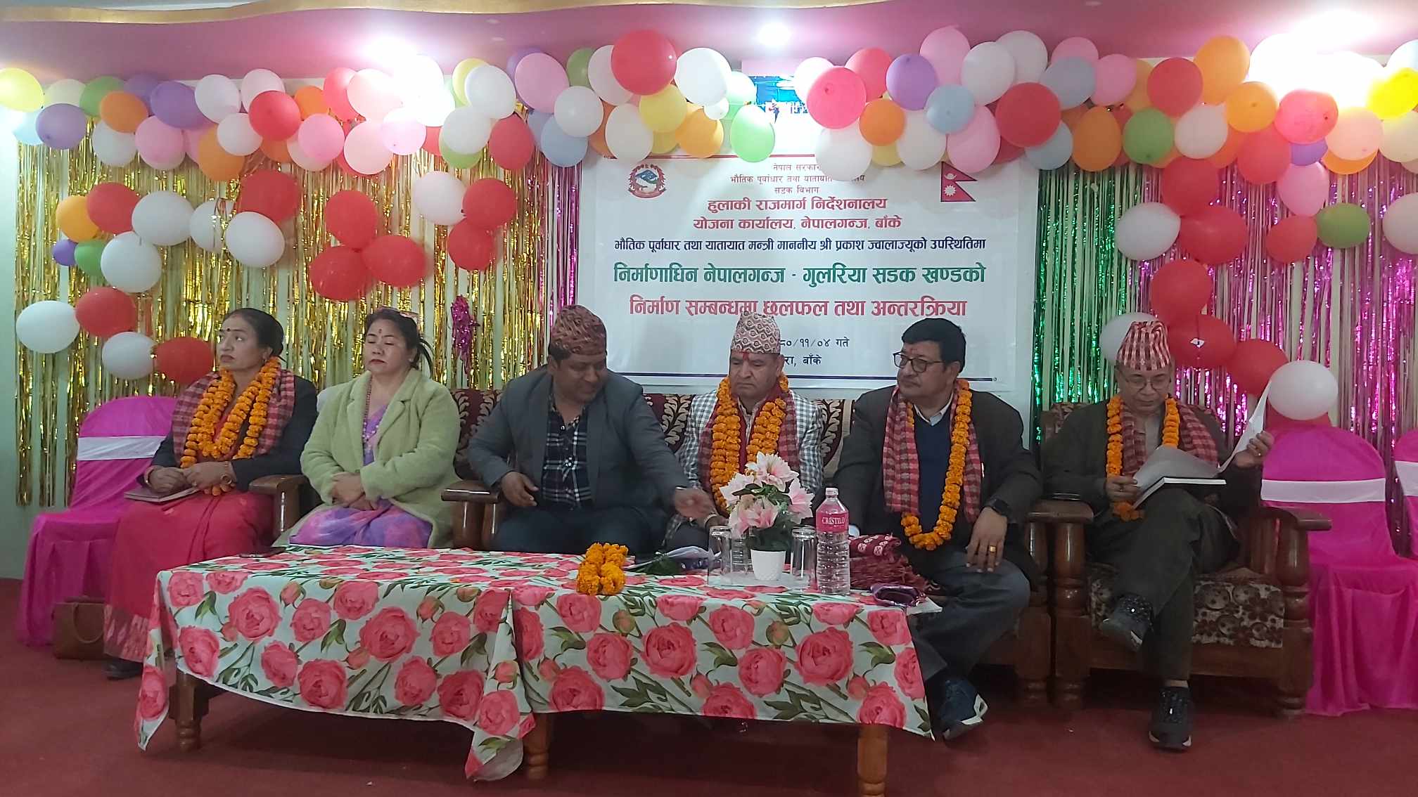 नेपालगन्ज–गुलरिया सडक निर्माण सुरु भएको एक बर्षमा ५७ प्रतिशत प्रगति भएको छ भने परसमुर–गौघाट सडक निर्माणमा ढिलाइ भएको छ । २७.६२ किलोमिटर लामो यो सडकमध्ये ११.६ किलोमिटर चार लेन सडक बन्दैछ । हुलाकी राजमार्ग निर्देशनालयका निर्देशक अजय मूलसहित मन्त्री ज्वालाले हुलाकी सडकको स्थलगत अनुगमन गरेका थिए ।
