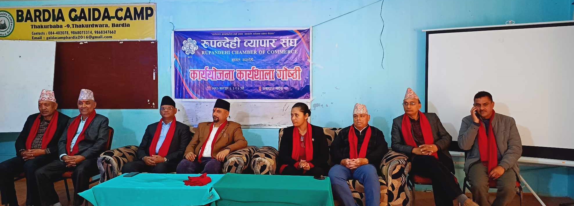 बर्दिया । रुपन्देही व्यापार संघको २ वर्षे रणनीतिक योजना तर्जुमा कार्यशाला ११ बुँदे ठाकुरद्वारा घोषणापत्र जारी गर्दै सकिएको छ । लुम्बिनी प्रदेशको पर्यटकिय क्षेत्र वर्दियाको ठाकुरद्वारामा फागुन २ देखि ४ गतेसम्म आयोजित कार्यशालामा संघले आगामी २ बर्ष आयोजना गर्ने कार्यक्रमको तर्जुमा तथा विगतको समिक्षा गर्दै घोषणा पत्र सार्वजनिक गरेको हो ।