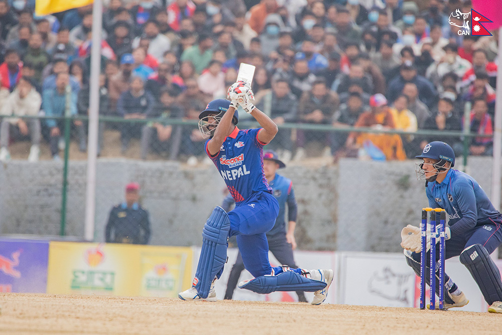 त्यस्तै कप्तान रोहित पौडेल, अनिल शाह र देव खनाल शुन्यमा आउट भए भने दिपेन्द्र सिंह ऐरीले ६, सोमपाल कामीले ५ र करण केसीले १२  रन बनाए ।