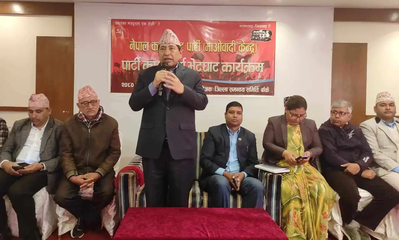 नेकपा माओवादी केन्द्र बाँकेका संयोजक नरेन्द्र पाण्डेको अध्यक्षतामा सम्पन्न कार्यकर्ता भेटघाटमा लुम्बिनी प्रदेशका सहरी विकास मन्त्री कृष्णा केसी, संविधानसभाका सदस्य पट्टु थारु, माओवादीका नेताहरू आइपी खरेल, नरेन्द्र न्यौपाने, अकलबहादुर बम, नवीन शर्मालगायतको उपस्थिति थियो ।