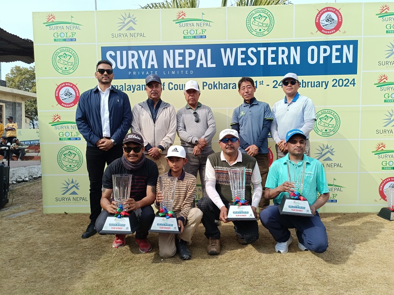 पोखरा । सूर्य नेपाल गल्फ टुर २०२३-२४ अन्तर्गतको चौंथो प्रतियोगिता, सूर्य नेपाल वेस्टर्न ओपनको प्रो-एमको उपाधि प्रोफेसनल सञ्जीब बहादुर नेपालीको टिमले जितेको छ।