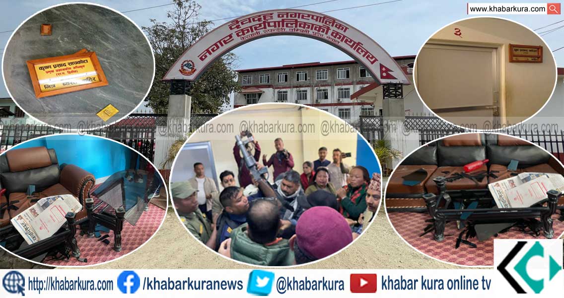 देवदहमा नेकपा एमालेबाट मेयर उपमेयर एमालेबाट निर्वाचित हुन् । तालाबन्दीले नगरको कामकाज प्रभावित हुँदा सेवाग्राही अफ्टयारोमा परेका छन् । ७ जना वडा अध्यक्ष सहित २२ जना जनप्रतिनिधि आन्दोलित भएका छन् । मेयर खरेलले जनप्रतिनिधि नैं पालिकाका मेयर र हाकिमको कार्यकक्षमा तोडफोड गर्दै तालाबन्दी गर्ने कार्य सह्य नुहने बताए । ‘पटक पटक छलफल गरियो । कांग्रेसका नेतासँग छफलफल गरियो । मुढेबलले हुने भए मेयर हाकिम किन चाहियो ? हामी अधिकार क्षेत्रबाहिर गएर काम गरेको भए म सजाए भोग्न तयार छौं । यस्तो कार्य स्वीकार्य छैन ।’ ‘आफूले भनेको मान्छे बनाउनु पाइएन । नगरप्रमुखको क्षेत्राधिकार भित्रको काम जवरजस्ती काम गर्न नदिने वातावरण सृजना भएपछि बाध्य भएर खेलकूद विकास समिति गठन गरिएको हो । भएको निणय तलमाथि हुँदैन ।’ मेयर खरेलले थपे ।