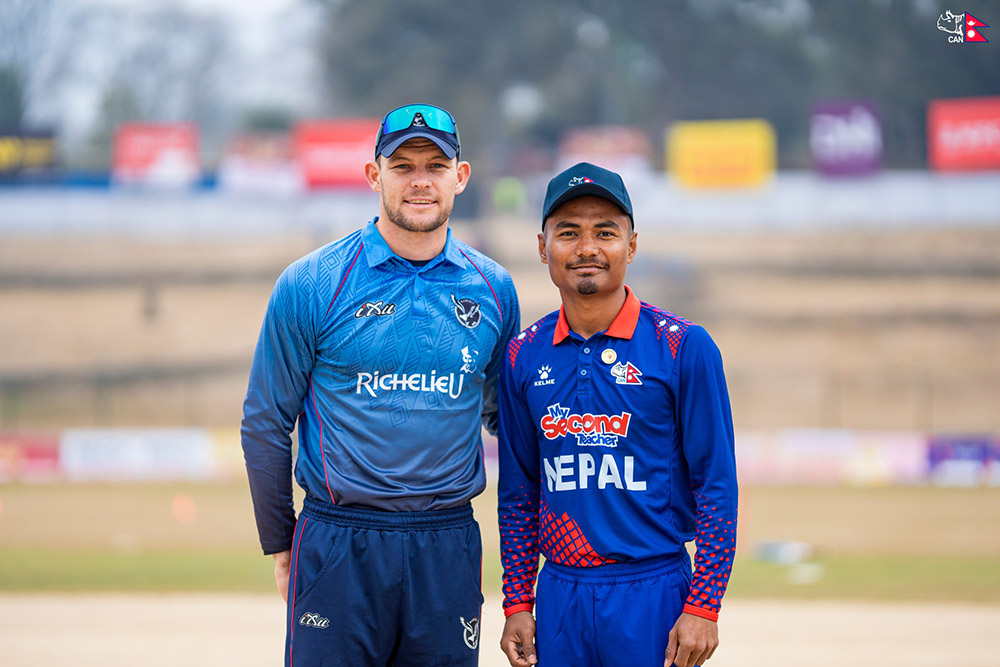 काठमाडौं । नामिबियाले नेपाललाई २०७ रनको लक्ष्य दिएको छ । त्रिकोणात्मक टी-२० सिरिजको पहिलो खेलमा टस जितेर पहिला ब्याटिंग गर्दै नामिबियाले २० ओभरमा ४ विकेट गुमाएर २०६ रन बनाएको हो ।