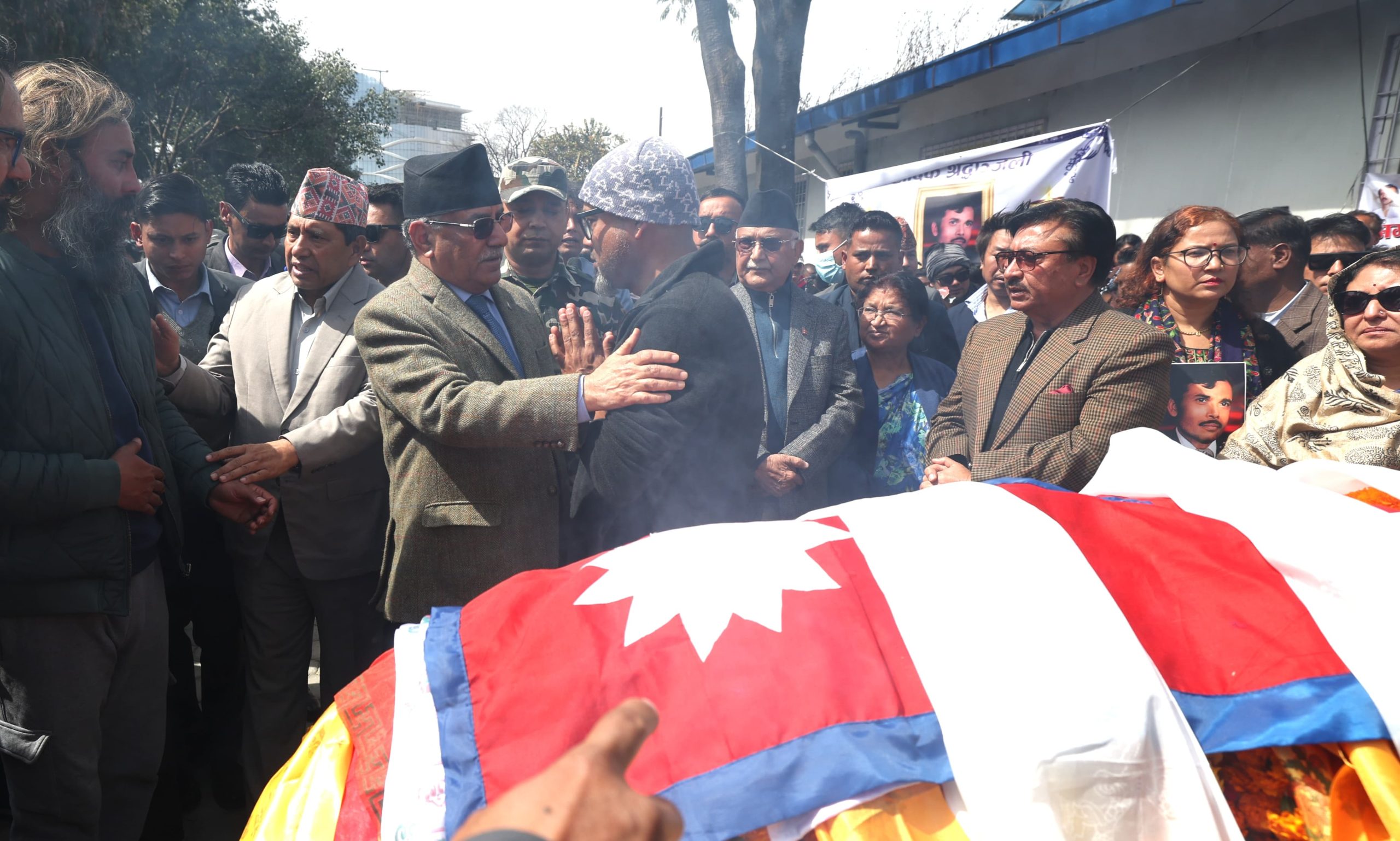 आज नेपाल सङ्गीत तथा नाट्य प्रज्ञा(प्रतिष्ठान पुगी आचार्यको पार्थिव शरीर श्रद्धाञ्जलि अर्पण गर्दै प्रधानमन्त्री दाहालले उनको योगदान मुलुकका लागि महत्वपूर्ण रहेको स्मरण गरे । उनले स्व आचार्यको पार्थिव शरीरमा राष्ट्रिय झण्डा ओढाएर सम्मान गरेका थिए ।
