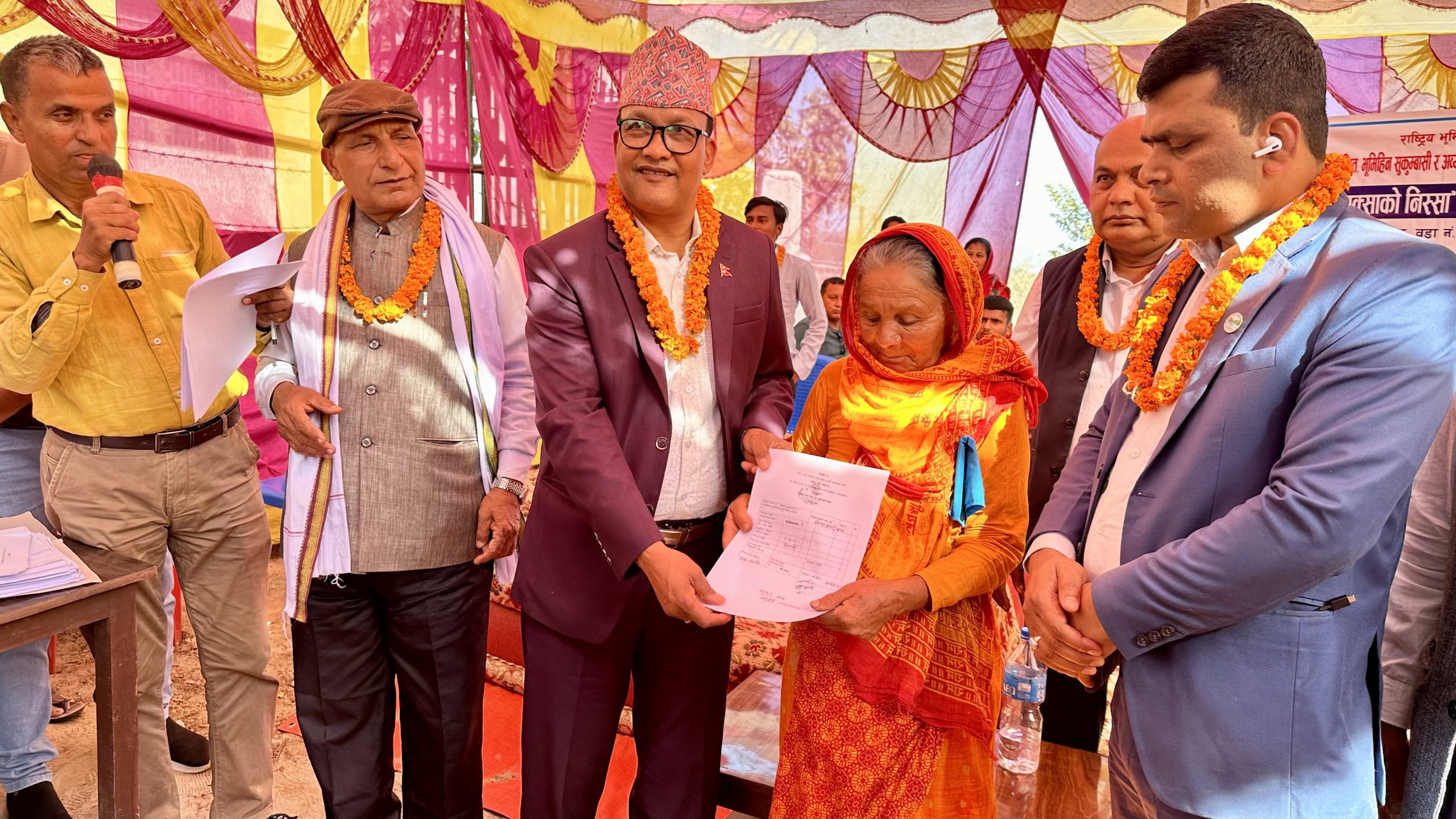 वडावासीलाई भूमिको अधिकार दिलाउन वडा र नगरको सहजीकरण समितिबाट प्रमाणीकरण गरी राष्ट्रिय भूमि आयोगसँगको समन्वयमा भूमिहीन दलित, भूमिहीन सुकुम्बासी तथा अव्यवस्थित बसोबासीको लगत सङ्कलन गरी नगरपालिकाले निस्सा वितरण गरेको नगरप्रमुख महेशप्रसाद चौधरीले जानकारी दिए । उनले भने, “वषौँदेखि जोतभोग गरेका तर आफ्नो नाममा जग्गा नभएका यहाँका भूमिहीनलाई जग्गा दिलाउन हामीले विभिन्न वडामा पहिलो चरणको प्रक्रिया सुरु गरिसकेका छौँ । निस्सा वितरणका आधारमा नै जग्गाको नापजाँचको कामलगायतका प्रक्रिया अगाडि बढाइने छ । सम्पूर्ण प्रक्रिया पूरा गरी एक महिनाभित्रै जग्गाधनी पुर्जा वितरण गर्नका लागि राष्ट्रिय भूमि आयोगका प्रतिनिधिलाई अनुरोध गर्दछु ।”