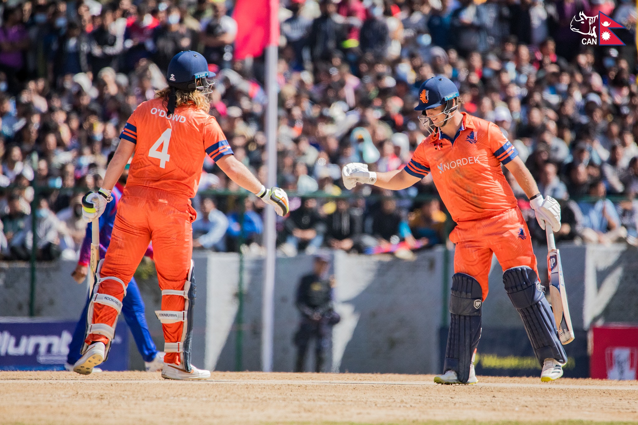 उत्कृष्ट सुरुआत गरेको नेदरल्याण्ड्सका लागि ओपनरद्वय लेभिट र ओ डाउडले पहिलो विकेटका लागि ८३ रनका साझेदारी गरे । नवौँ ओभरमा बलिङका लागि आएका कुशल मल्लले आफ्नो पहिलो ओभरमा दुई विकेट लिँदै नेपाललाई राहत दिलाए पनि त्यो जितका लागि पर्याप्त भएन ।