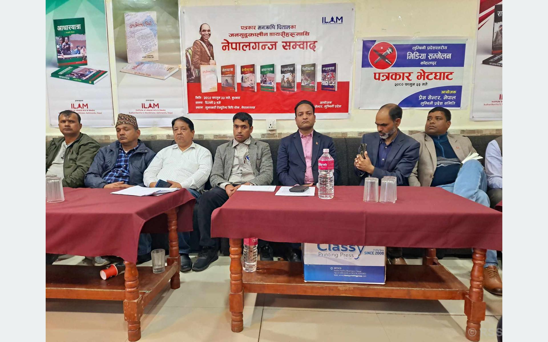 नेपालगन्ज । पत्रकार मनऋषि धितालद्वारा जनयुद्धमा केन्द्रित रही हालै प्रकाशित पुस्तकहरुमाथि समीक्षात्मक चर्चा भएको छ । नेपालगन्जमा आयोजित ‘नेपालगन्ज संवाद’ कार्यक्रममा पुस्तकहरु ‘गुफा प्रेसका चिठी’, ‘जेलयात्रा’, ‘बेनीयात्रा’, ‘आधारयात्रा’, ‘राजमार्गयात्रा’ र ‘गण्डकयात्रा’मा संवाद गरिएको हो ।