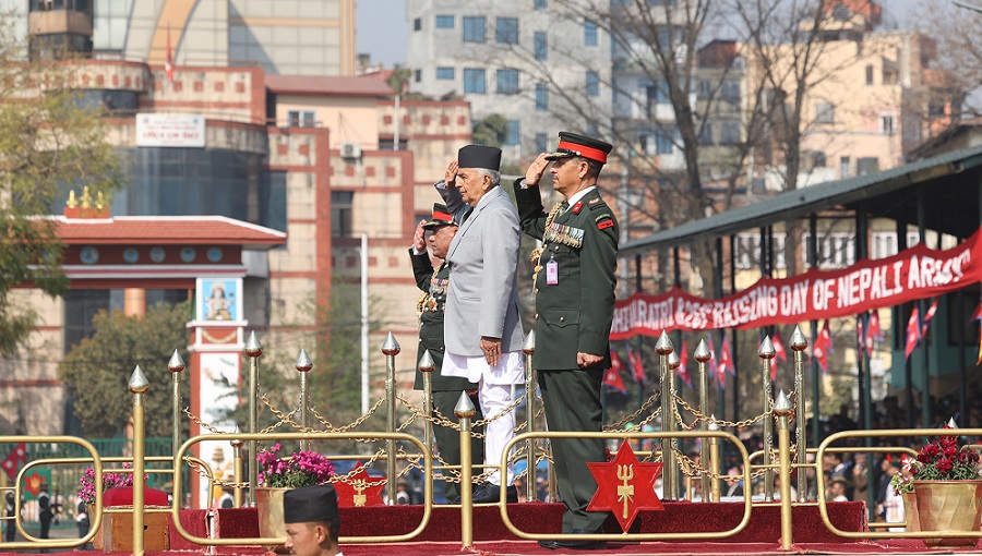 काठमाडौं । राष्ट्रपति रामचन्द्र पौडेल महाशिवरात्रि तथा २६१औँ सेना दिवसका अवसरमा नेपाली सेनाद्वारा सैनिक मञ्च टुँडिखेलमा आज आयोजित विशेष समारोहमा सरिक भएका छन् ।