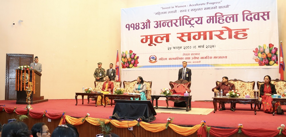 महिला, बालबालिका तथा ज्येष्ठ नागरिक मन्त्रालयले आज ११४औं अन्तर्राष्ट्रिय महिला दिवसका अवसरमा आयोजना गरेको कार्यक्रममा राष्ट्रपति पौडेलले महिलाका अधिकारलाई सुनिश्चित गर्न घरबाटै संस्कार र सोच परिर्वतन गर्नुपर्ने बताएका हुन् ।