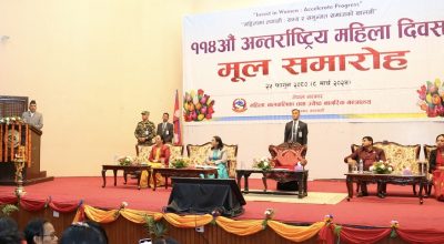 ११४ औं अन्तर्राष्ट्रिय महिला दिवस (८ मार्च ) शुक्रबार “महिलामा लगानी ः सभ्य र समुन्नत समाजको थालनी भन्ने राष्ट्रिय नाराका साथ विभिन्न कार्यक्रम गरी बिश्वभर एकैसाथ मनाईदैछ ।