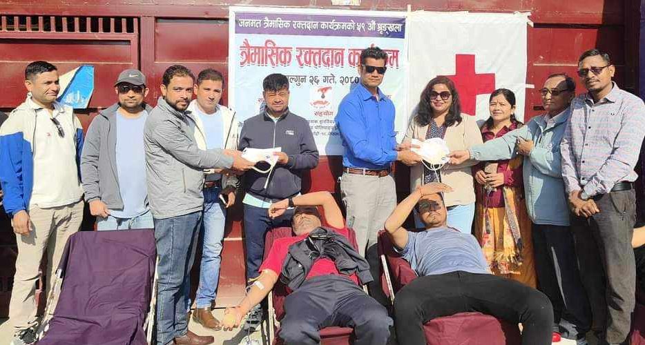 नेपाल स्वयमसेवी रक्तदाता समाज बाँके जिल्ला कार्यसमितिको समन्वय, सिद्धबाबा हार्डवेयर तथा स्टार पोेलिपाइप प्रा.लि.को सहयोगमा भएको त्रैमासिक रक्तदान कार्यक्रमको ५९ औं श्रृङ्खलामा ६ महिला सहित ४० जनाले रक्तदान गरेका हुन् ।