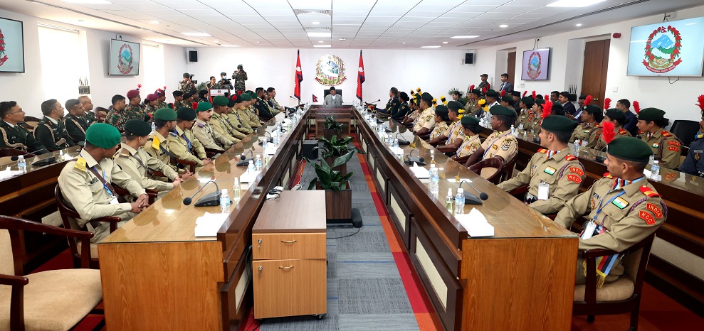 नेसनल क्याडेट कर्प्स (एनसिसी) कार्यक्रम अन्तर्गतको विभिन्न दक्षिण एसियाली देशका सैन्य अधिकृतबीचको तालिम आदानप्रदान कार्यक्रममा सहभागी सैन्य प्रशिक्षार्थीहरूसँग आज सिंहदरबारमा भएको भेटममा उनले एकअर्का देशको आर्थिक–सामाजिक एवं सांस्कृतिक अवस्थाबारे सचेतना र सम्मानमा विस्तार गर्ने विश्वास व्यक्त गरे ।
