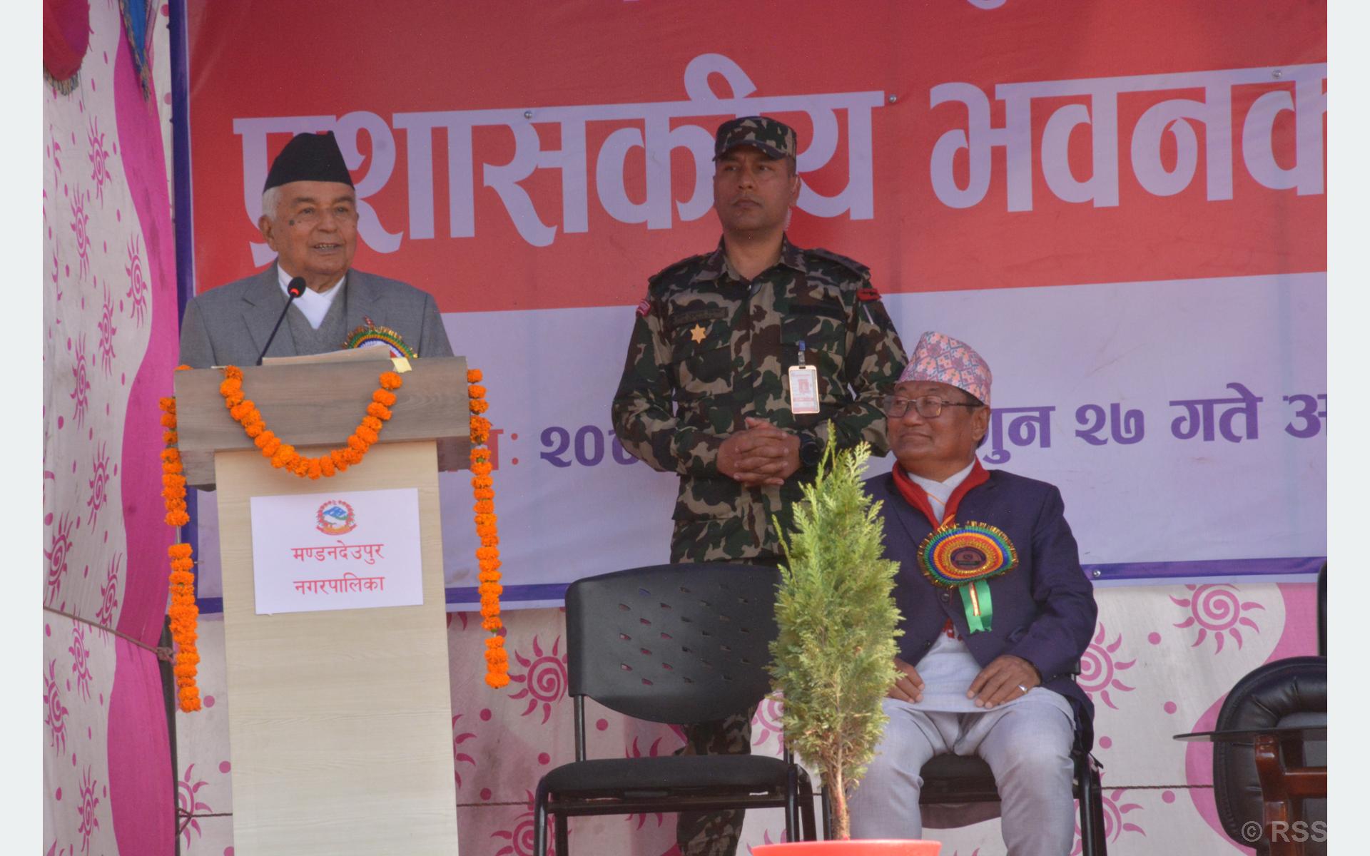 मण्डनदेउपुर नगरपालिकाको सातौँ स्थापना दिवस तथा नवनिर्मित प्रशासकीय भवनको आज उद्घाटन गर्दै उनले संविधानको भावना तथा सङ्घीयताको मर्मअनुरुप हुनेगरी राज्यबाट प्रवाह हुने सेवा तथा विकास निर्माणसम्बन्धी कामलाई नतिजामुखी र नागरिकले अनुभूत गर्न सक्नेगरी सम्पादन गर्न र सुशासन प्रत्याभूत गर्न स्थानीय निकाय दत्तचित्त हुनुपर्नेमा जोड दिए । उनले विकास, पूर्वाधार, कृषि, शिक्षा, सडक, खानेपानी, बिजुलीसहित जनताका आधारभूत आवश्यकता पूरा गर्नुपर्ने बताए ।