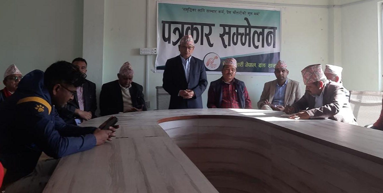 प्रेस चौतारी नेपाल दाङले आज तुलसीपुरमा आयोजना गरेको पत्रकार सम्मेलनमा उनले यो गठबन्धन बीचमा नटुट्ने बताएका हुन् । “हामी अर्को गठबन्धन बनाउनेतिर लाग्नु हुँदैन, एमाले–कांग्रेसको गठबन्धन बन्ने हो कि भनेर शङ्का गर्नु पर्दैन”, उनले भने, “तर त्यो सम्भावना छैन, कांग्रेस ढुक्कसँग प्रतिपक्षमा बसे हुन्छ ।”