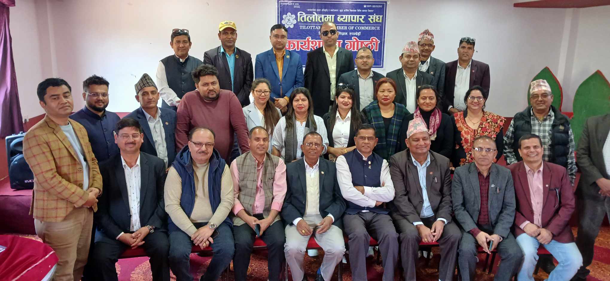 तिलोत्तमा । तिलोत्तमा व्यापार संघको कार्यशाला गोष्ठी बिहीबारदेखि पाल्पामा सुरु भएको छ । संघको रणनीतिक योजना निर्माण एवं संस्थागत सवलीकरणको लक्ष्यसहित कार्यशाला गोष्ठी सुरु भएको हो । गोष्ठीले आगामी ३ वर्षका लागि लक्ष्य, रणनीति र कार्यक्रम निर्धारण गर्ने छ ।