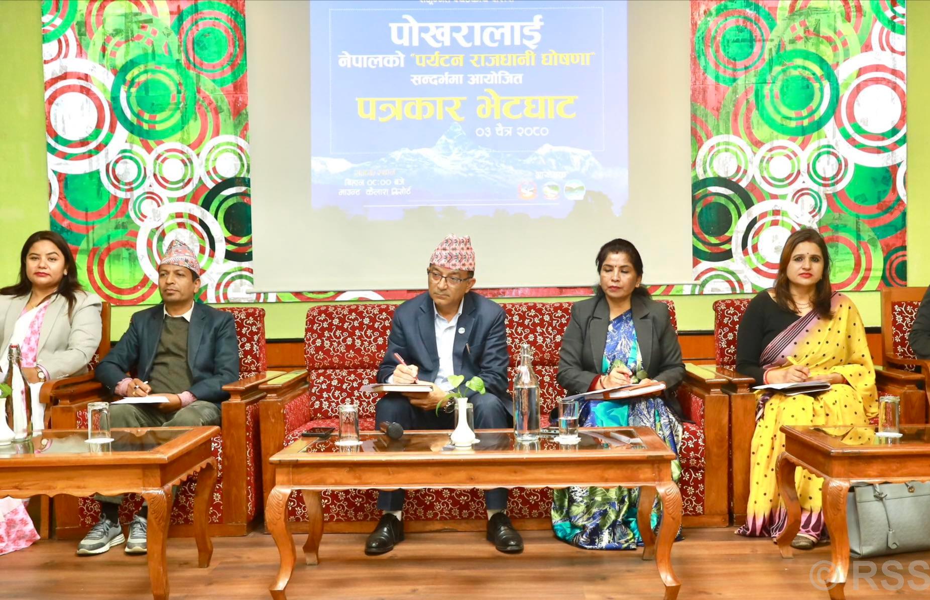 पोखरा महानगरपालिकाले आइतबार औपचारिक कार्यक्रमका बीच पोखरालाई पर्यटकीय राजधानी घोषणा गर्ने तयारी पूरा भएको आज आयोजित पत्रकार सम्मेलनमार्फत जानकारी गराएको छ । महानगर प्रमुख धनराज आचार्यले २०७५ सालदेखि नै यस विषयमा अध्ययन भइरहेको र पर्यटकीय राजधानी घोषणाका लागि आधारभूत मापदण्ड पोखरासँग भएकाले घोषणा गरेर पोखरालाई अन्तर्राष्ट्रिय जगतमा ‘ब्राण्ड’ बनाउन लागिएको बताए ।
