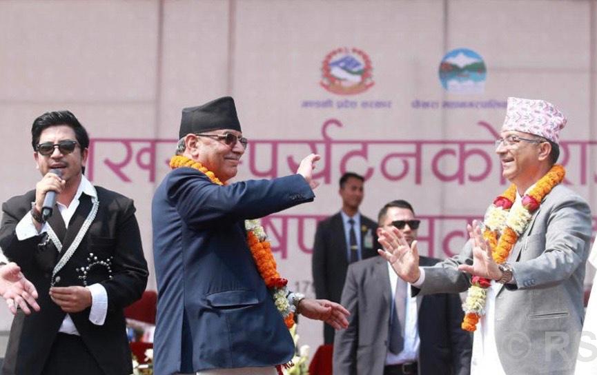 गायक सपुतको ‘बोलमाया…।’ गीतमा प्रधानमन्त्रीलगायत विशिष्ट ओहोदाका व्यक्तित्वहरुको नाचले उक्त समारोहमा बेग्लै रौनकता ल्याएको थियो । प्रधानमन्त्री नाच्दा दर्शकले तालीले साथ दिएका थिए । सो दृश्यलाई धेरैले क्यामरा र मोबाइलमा कैद गरे ।