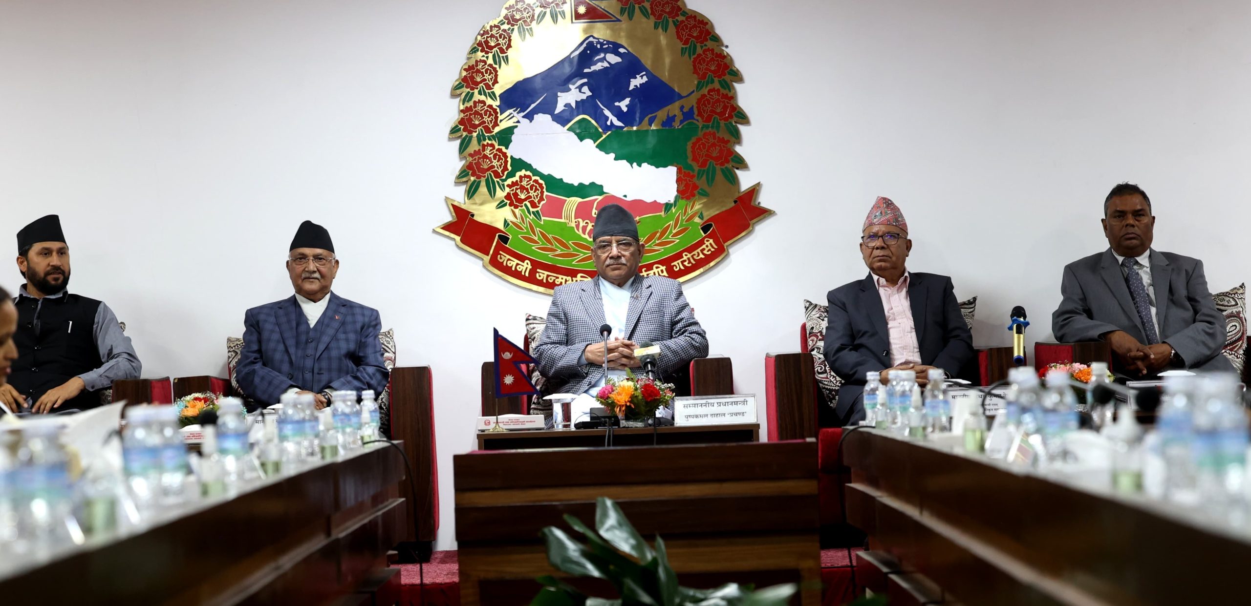 काठमाडौं । सरकारमा सहभागी पाँच राजनीतिक दलले ‘न्यूनतम नीतिगत प्राथमिकता र साझा सङ्कल्प’ सार्वजनिक गरेको छ । प्रधानमन्त्री कार्यालयमा आज आयोजित कार्यक्रममा ‘निराशा चिर्दै, भरोसा जगाउँदै’ लैजाने प्रतिबद्धतासहित न्यूनतम कार्यक्रम सार्वजनिक गरिएको हो ।