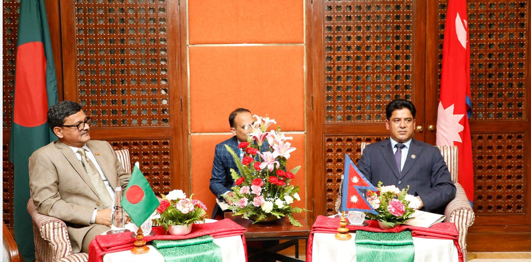 काठमाडौं । उद्योग, वाणिज्य तथा आपूर्तिमन्त्री दामोदर भण्डारी र बङ्गलादेशका शिपिङ राज्यमन्त्री खालीद महमुद चौधरीबीच आज यहाँ द्विपक्षीय हितका विषयमा भेटवार्ता भएको छ ।