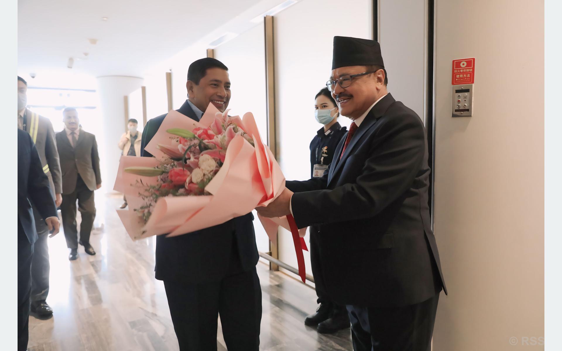 बेइजिङस्थित डाक्सिङ अन्तर्राष्ट्रिय विमानस्थलमा चीनको विदेश मन्त्रालयका डेपुटी डिरेक्टर जनरल चाङ माओमिङ, चीनका लागि नेपाली राजदूत विष्णुपुकार श्रेष्ठ तथा चिनियाँ विदेश मन्त्रालयका वरिष्ठ अधिकारीलगायतले स्वागत गरे ।