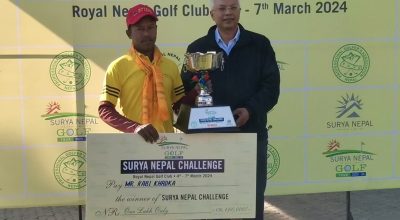 काठमाडौं । प्रोफेसनल गल्फर भुवन नगरकोटीलाई सात स्ट्रोकको फराकिलो अन्तरमा हराउँदै एमेच्योर सदभाव आचार्यले सूर्य नेपाल गल्फ टुर २०२३-२४ अन्तर्गत छैटौं प्रतियोगिता, सूर्य नेपाल एनपीजीए टुर च्याम्पियनसीपको उपाधि जितेका छन।
