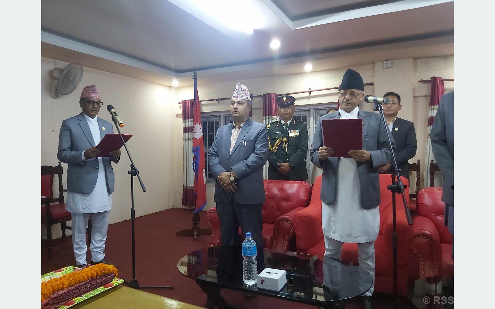 प्रदेश प्रमुख शर्मासमक्ष प्रदेश प्रमुखको कार्यालयमा आयोजित कार्यक्रममा नेकपा (एमाले)का संसदीय दलका नेता जगन्नाथ थपलियाले मन्त्री पदको शपथ लिएका हुन्।