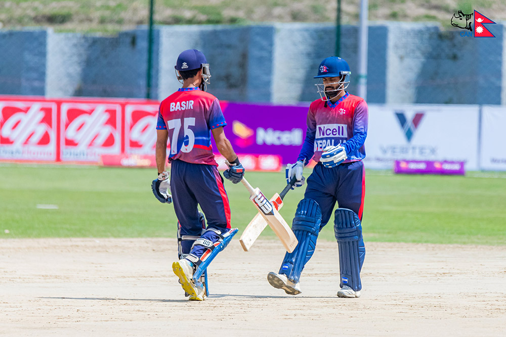 नेपाल ‘ए’ का लागि आरिफ सेखले सर्बाधिक ९३ रन बनाएका थिए । आरिफले ४८ बल खेल्दै अविजित ९३ रन बनाएका हुन् । त्यस्तै रसिद खानले २४ रन बनाएका थिए भने बसिर अहमदले १९, कमल सिंह ऐरीले १९, पवन सराफले १३ र कप्तान विनोद भण्डारीले ११ रन बनाएका थिए ।