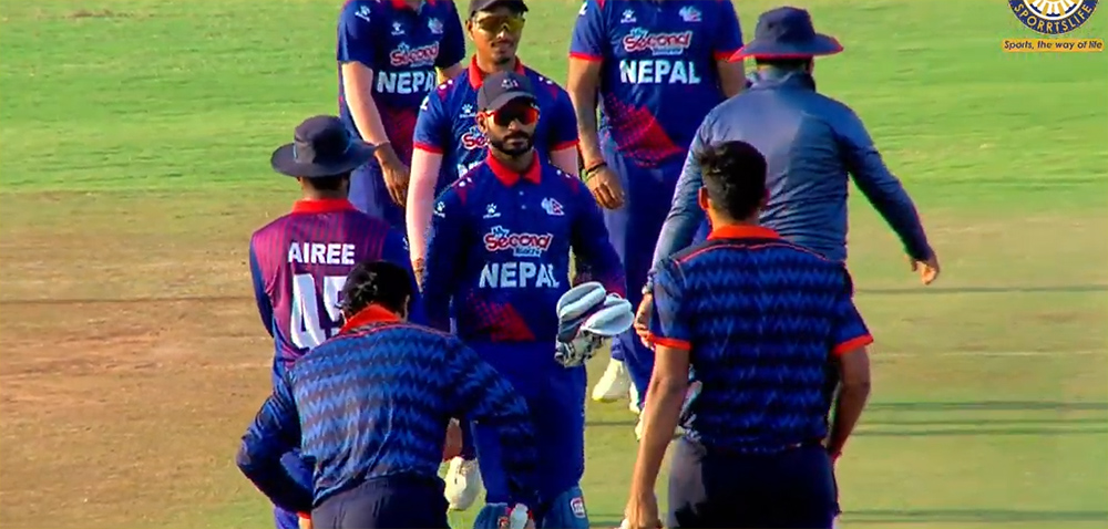 नेपालका लागि कुशल भुर्तेल र आसिफ सेखले ९-९ रन बनाए भने कप्तान रोहित पौडेलले १८, अनिल शाहले २५, गुलशन झाले १३, सन्दीप जोराले २८ रन बनाएका थिए । त्यस्तै कुशल मल्लले अविजित ४० तथा दिपेन्द्र सिंह ऐरीले ५ रन बनाएका थिए ।