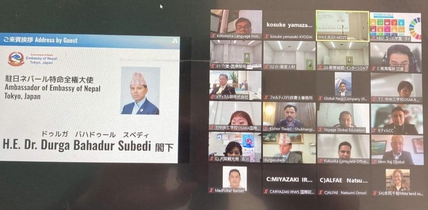 कार्यक्रममा जापानका लागि नेपाली राजदूत सुबेदीले जापान(नेपालको लामो दौत्य सम्बन्धको चर्चा गर्दै यो कार्यक्रम मार्फत नेपाल र जापानको व्यापार व्यवसाय प्रवर्द्धनमा र जापानी लगानीकर्ताहरूलाई नेपालमा लगानीको लागि सक्दो सहयोग गर्न सदैव तत्पर रहेको बताए ।