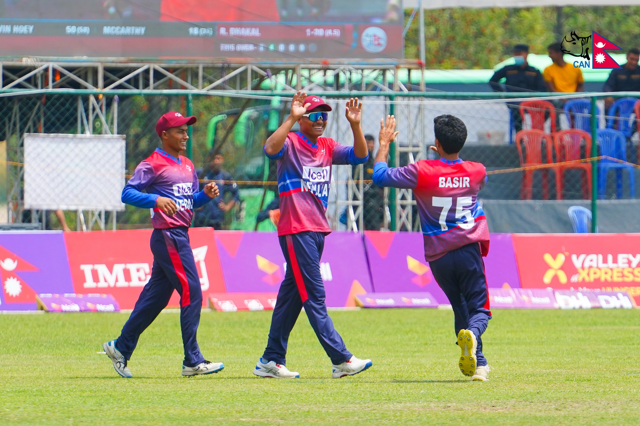 आयरल्याण्ड वोल्भ्सलाई सस्तैमा समेट्न रिजन ढकाल र साहब आलमले ३-३ विकेट लिए भने २ विकेट मौसम ढकालको नाममा रह्यो । कमलसिंह ऐरी १ विकेट लिन सफल भए ।
