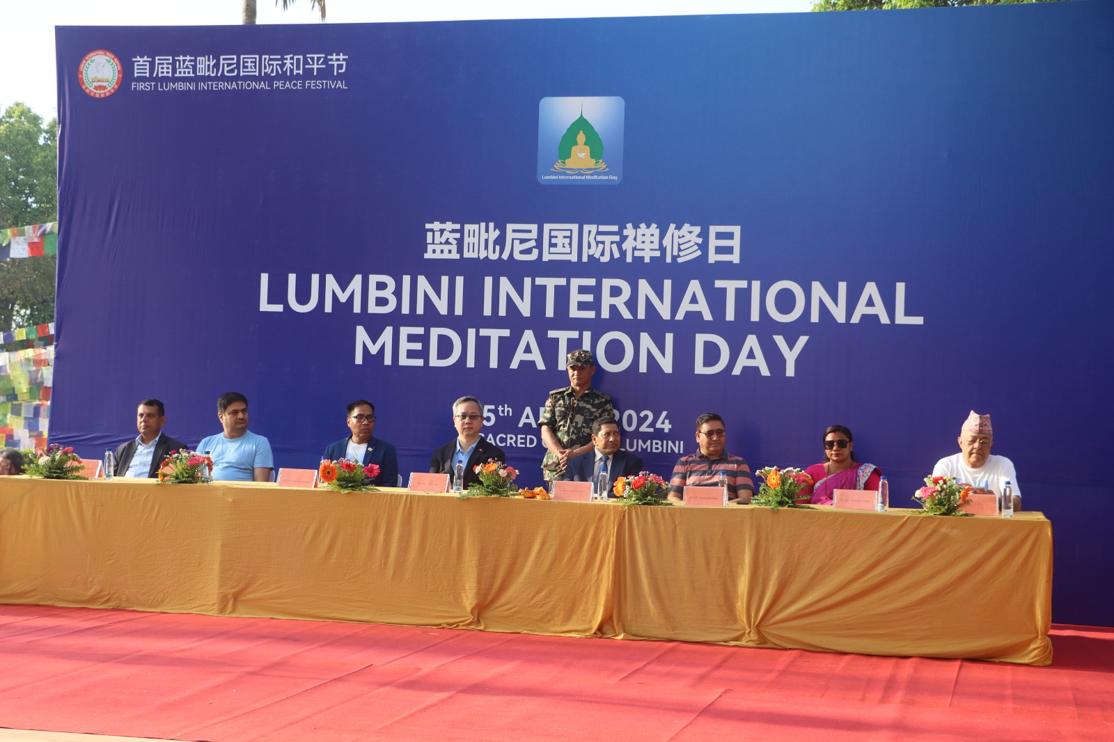 लुम्बिनी । बुद्धजन्मस्थल लुम्बिनीमा दुई दिने ‘लुम्बिनी अन्तर्राष्ट्रिय शान्ति महोत्सव’ शुक्रबारदेखि शुरू भएको छ । अन्तर्राष्ट्रिय ध्यान दिवसकाे अवसर पारेर त्तयाेजित महाेत्सवकाे उपप्रधान तथा परराष्ट्रमन्त्री नारायणकाजी श्रेष्ठले उदघाटन गरेका हुन् । उदघाटनलाई सम्बाेधन गर्दै उपप्रधान तथा परराष्ट्र मन्त्री श्रेष्ठले ध्यानको माध्यमबाट समाजिक रुपान्तरण गर्नुपर्ने बताए ।