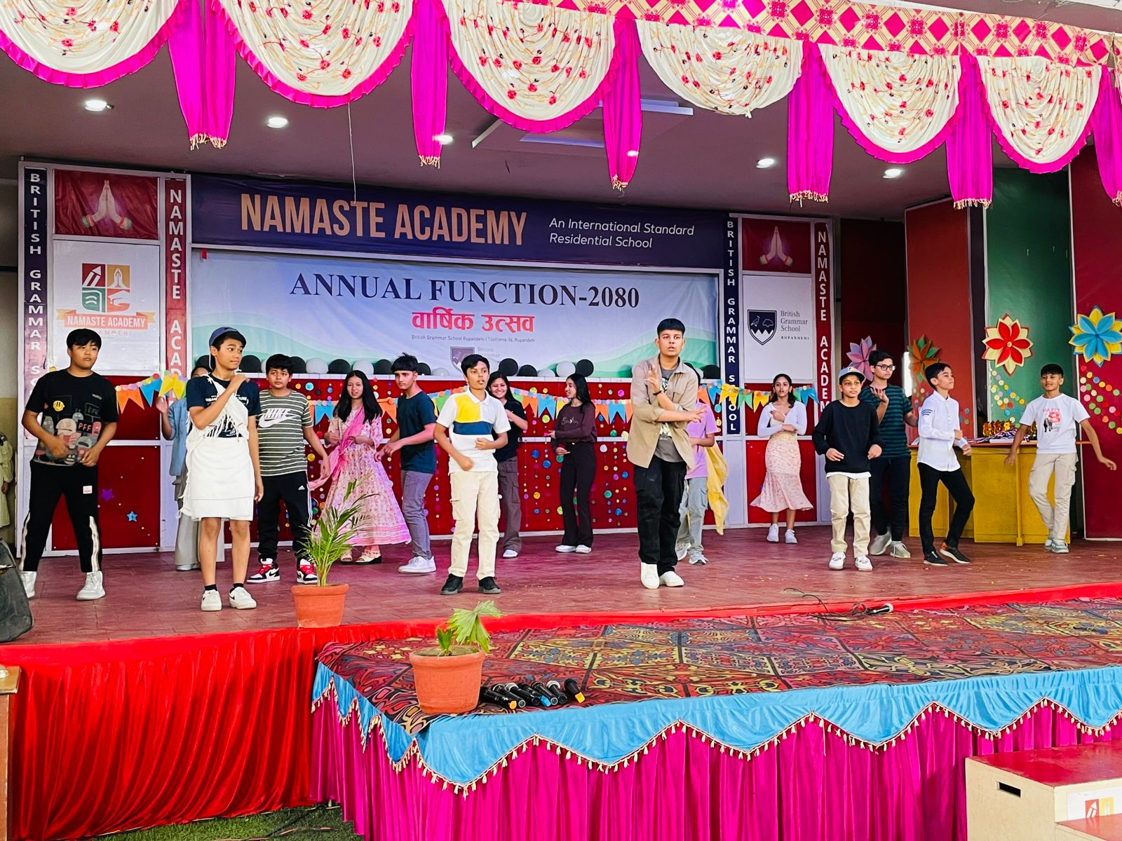 बुटवल । रुपन्देहीको तिलोत्तमामा अवस्थित नमस्ते एकेडेमीमा विद्यार्थीका विभिन्न प्रतिभाहरुसहित शुक्रबार वार्षिकोत्सव सम्पन्न भएको छ । ब्रिटिज कलेज काठमाडौंको व्यवस्थापनमा संचालित एकेडेमीले वर्षभरीका विभिन्न शैक्षिक क्रियाकलापहरुमा उत्कृष्टता हासिल गर्ने विद्यार्थीलाई सम्मान तथा पुरस्कार वितरण गरेको छ ।