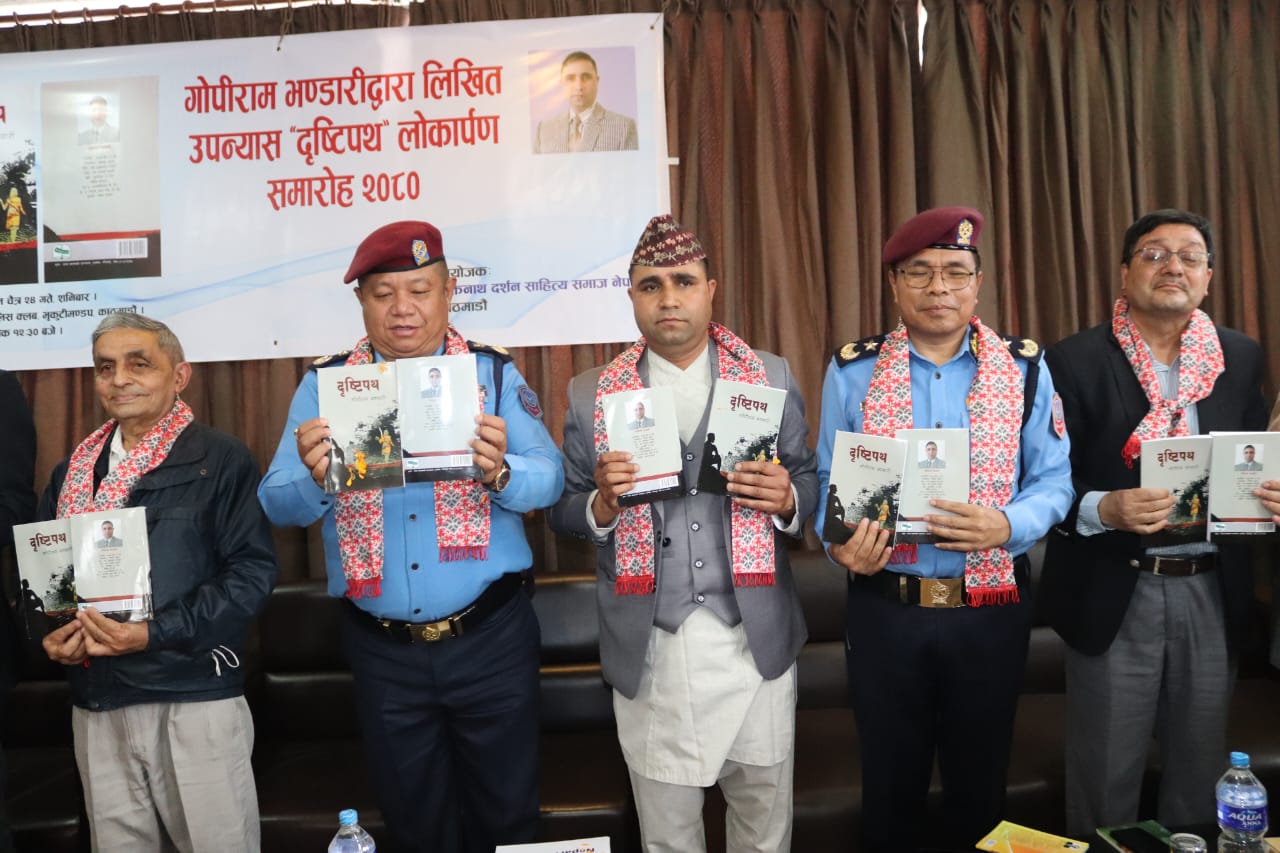 काठमाडौं । नेपाल प्रहरीका वरिष्ठ प्रहरी नायव निरीक्षक एवम् साहित्यकार गोपीराम भण्डारीको उपन्यास ‘दृष्टिपथ’ विमोचन गरिएको छ । मुक्तिनाथ दर्शन साहित्य समाजले आज नेपाल पुलिस क्लब भृकुटिमण्डपमा आयोजना गरेको कार्यक्रममा उपन्यासकार भण्डारीद्वारा लिखित उपन्यास ‘दृष्टिपथ’को विमोचन गरिएको हो ।