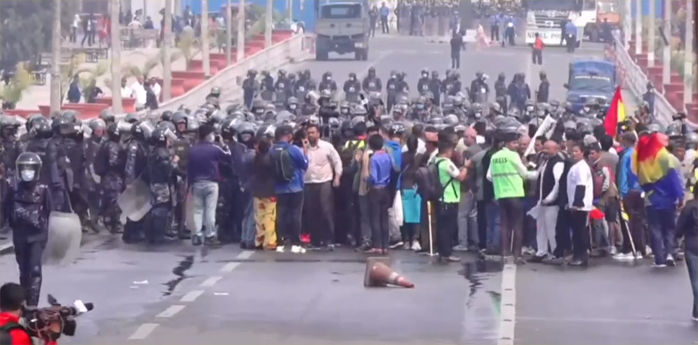 भृकुटीमण्डपबाट शुरु भएको राप्रपाको जुलुस भद्रकाली हुदै सिंहदरबारतर्फ आउन लागेपछि प्रहरीले हस्तक्षेप गरेको थियो । त्यसपछि प्रहरी राप्रपाका प्रदर्शनकारीहरुबीच केहीबेर झडप भएको छ । निषेधित क्षेत्र तोडेको भन्दै प्रहरीले पानीको फोहोरा र अश्रुग्याँस प्रहार गरेर प्रदर्शनकारीलाई तितरबितर परेको छ ।
