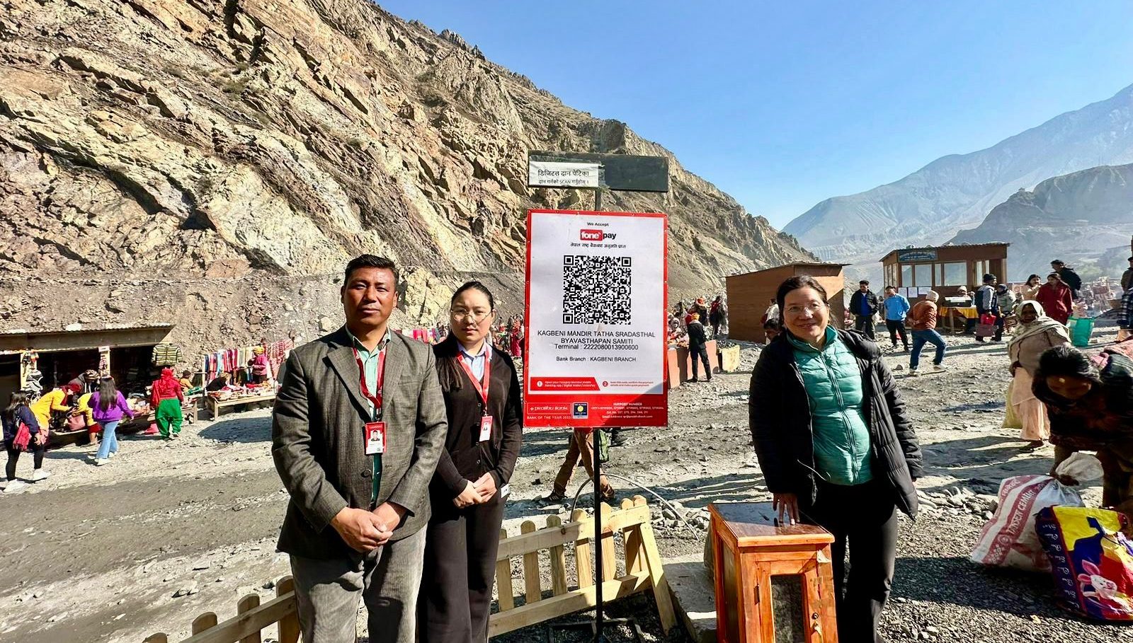 मुस्ताङ । नगद रहित भुक्तानी प्रणालीमा विशेष जोड दिईरहेको प्रभु बैँकले कागबेनीमा भक्तजनहरुको सहजीकरण र सुबिधाका लागि“कागबेनी मन्दिर श्राद्घस्थल व्यबस्थापन समिति“लाई क्यु आर स्ट्याण्ड उपलब्ध गराएको छ । आज एक सामारोका बीच बैकले श्राद्धस्थल व्यवस्थापन समितिलाई क्यु आर स्ट्याण्ड हस्तान्तरण गरेको छ ।