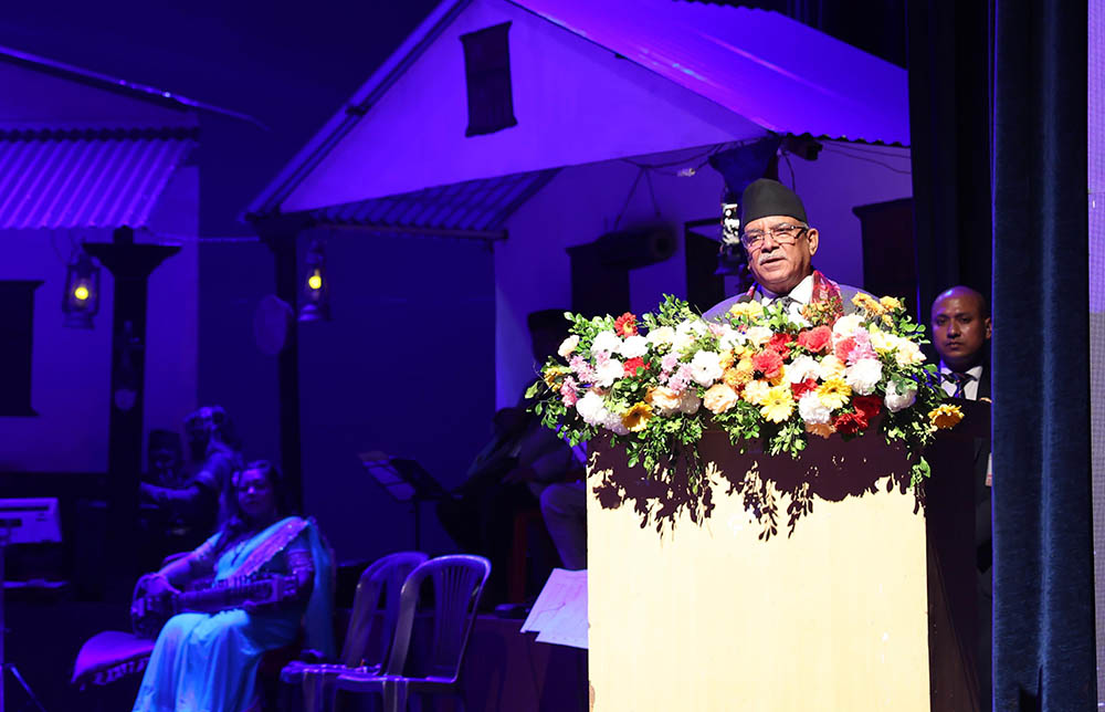 “नेपाली जनताको लामो सङ्घर्ष, त्याग र बलिदानबाट प्राप्त भएको संविधानले समाजवादउन्मुख राज्य निर्माणको सङ्कल्प गरेको छ, देशको अग्रभागमा रहेर विशाल राष्ट्रिय जागरण पैदा गर्न सांस्कृतिक संस्थानलगायतले महत्त्वपूर्ण भूमिका खेल्नुपर्छ”, प्रधानमन्त्रीले भने।