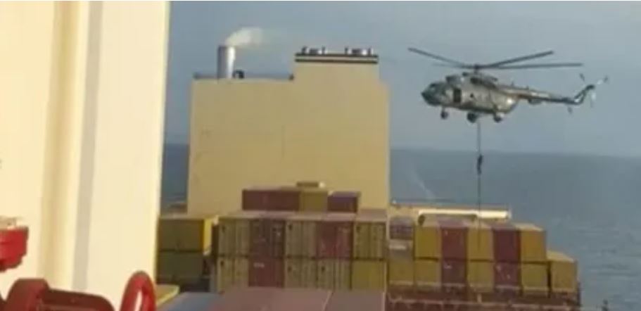 सामाजिक सञ्जालमा भाइरल भएको भिडियोमा आक्रमण भएको देख्न सकिन्छ । बोर्डमा चालक दलका सदस्यले भनेको सुन्न सकिन्छ- ‘बाहिर नआउ’। जहाज कब्जामा लिइएको हेलिकप्टर इरानको अर्धसैनिक रिभोलुसनरी गार्डको थियो। सो कार्गो जहाजमा इजरायली व्यापारी इअल अफरको पनि स्वामित्वमा रहेको जनाइएको छ।