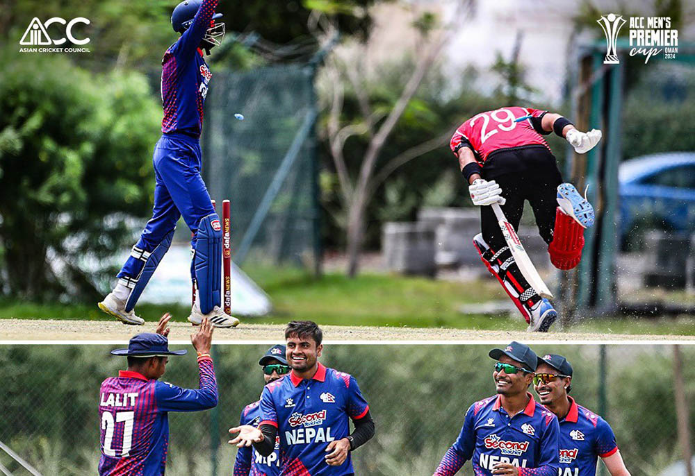 त्यस्तै नेपाली बलर अविनाश बोहोराले सर्बाधिक ३ विकेट लिए भने ललित राजबंशी र दिपेन्द्र सिंह ऐरीले २-२ तथा करण केसीले एक विकेट लिएका थिए ।