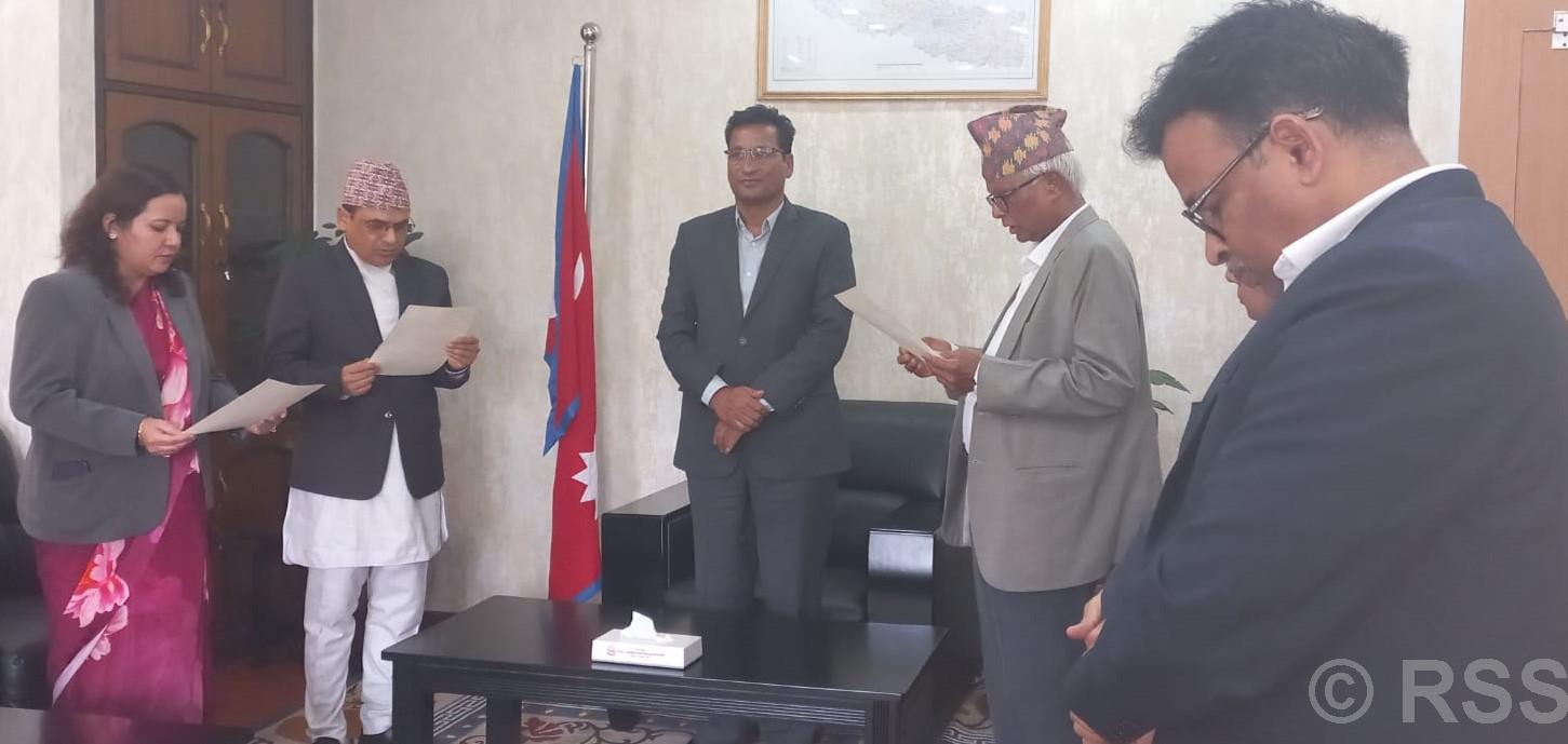 सिंहदरबारस्थित ऊर्जा, जलस्रोत तथा सिँचाइ मन्त्रालयमा मन्त्री शक्तिबहादुर बस्नेतको उपस्थितिमा जलस्रोत तथा सिँचाइ सचिव सरिता दुवाडी र उद्योग वाणिज्य तथा आपूर्ति मन्त्रालयका वाणिज्य सचिव दिनेशकुमार घिमिरेलाई पद तथा गोपनीयताको शपथ गराएका हुन् ।
