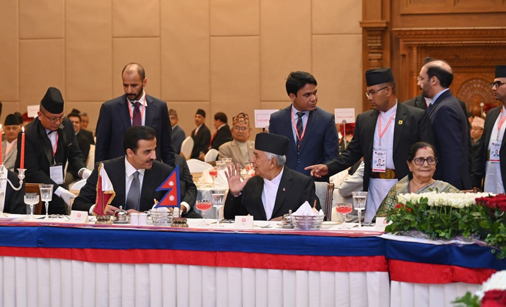 काठमाडौं । राष्ट्रपति रामचन्द्र पौडेलले नेपालको दुई दिने राजकीय भ्रमणमा आउनुभएका कतारका अमिर शेख तमिम विन हमाद अल थानीको सम्मानमा मंगलबार साँझ रात्रिभोजको आयोजना गरेका छ । सो अवसरमा विविध सांस्कृतिक झलक पनि प्रस्तुत गरिएको थियो ।