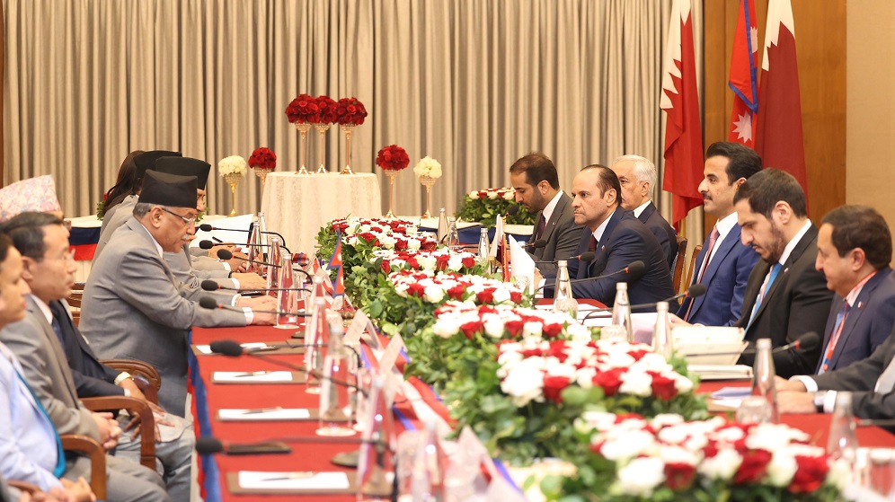 होटल सोल्टीमा भएको अमिर शेख तमिम बिन हमाद अल थानी र प्रधानमन्त्री पुष्पकमल दाहाल प्रचण्डबीच द्विपक्षीय भेटवार्तापछि