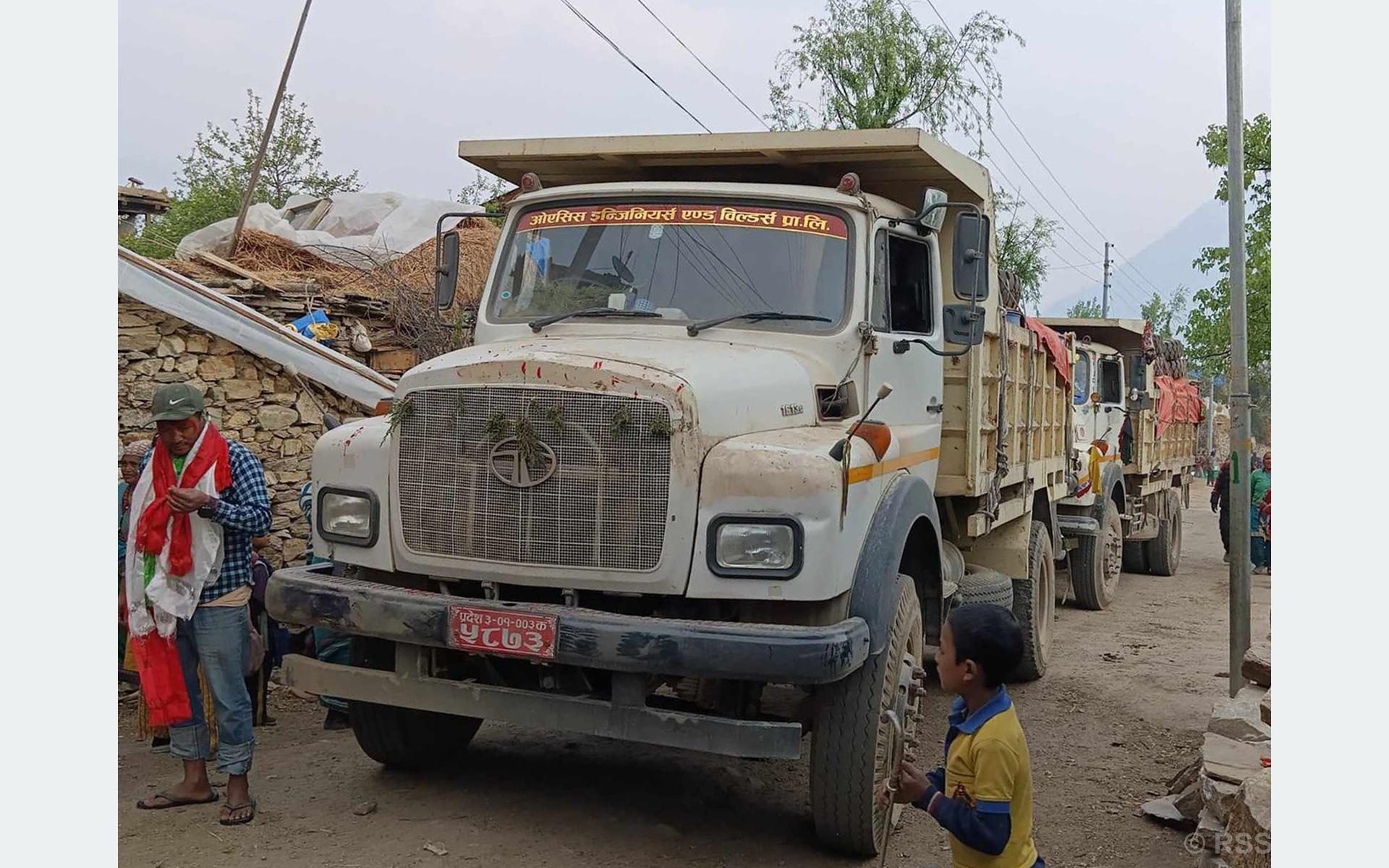 पहिलो पटक हुम्ला पुगे दुई टिपर, स्थानीयले गरे फूलमालाले स्वागत