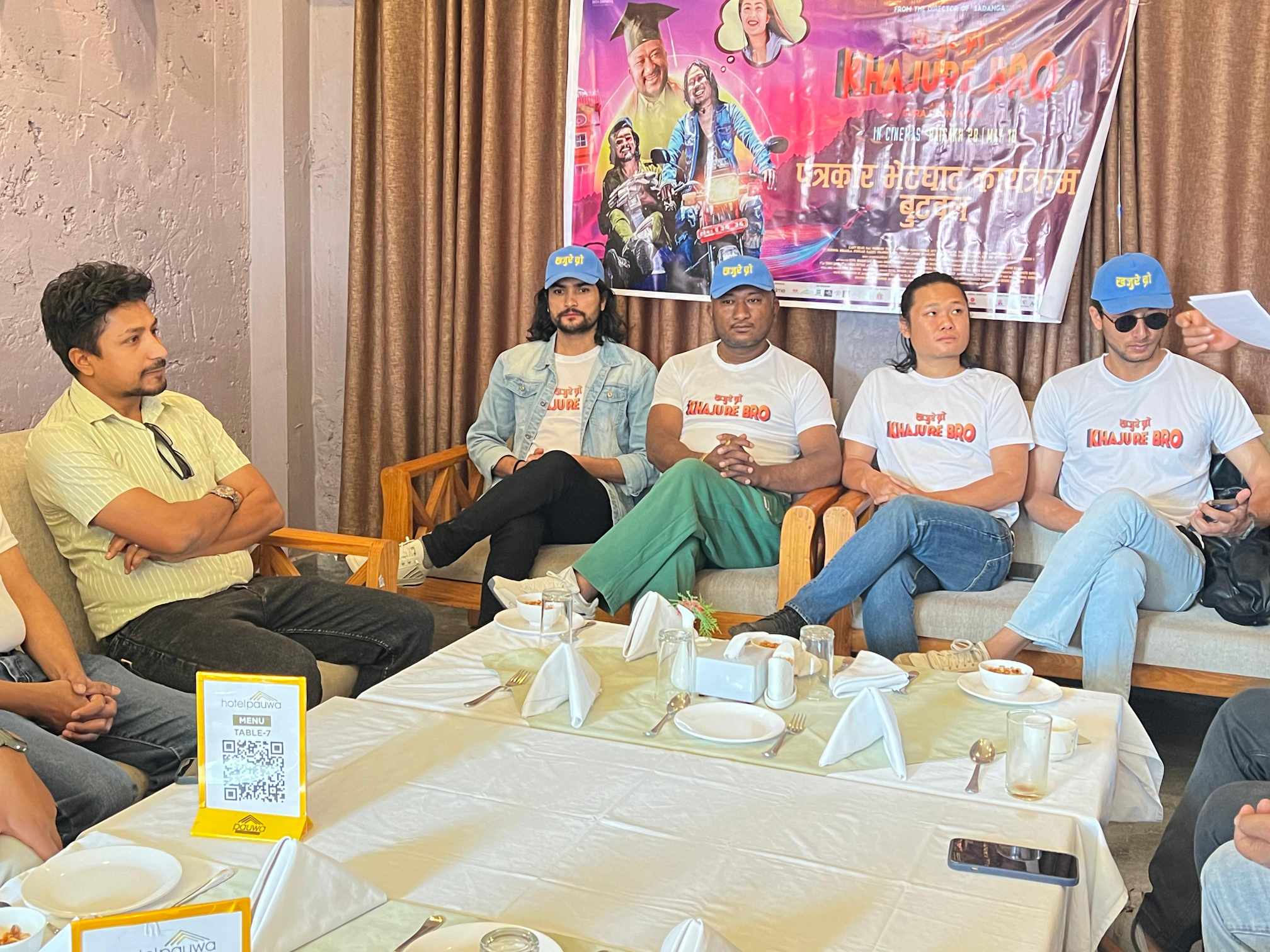 बुटवल । नेपाली चलचित्र ‘खजुरे ब्रो’को टिम चलचित्रको प्रमोसनको लागी बुटवल आइपुगेको छ । बैशाख २८ गतेदेखि प्रदर्शनमा आउन लागेको चलचित्र ‘खजुरे ब्रो’को टिमले बुटवलका पत्रकारहरुसँग भेटघाट गरी चलचित्रको बारेमा जानकारी दिएको हो ।