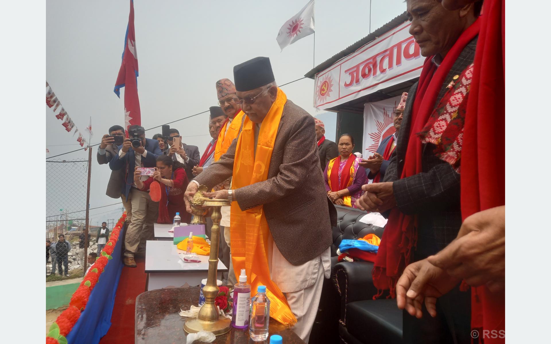 समृद्ध नेपाल सुखी नेपालीको नारालाई शीरोपर गर्दै समयअनुसार जनतालाई फलदायी हुने विकासकार्यमा अगाडि बढ्नुपर्ने भन्दै अध्यक्ष ओलीले विकासका कुरा छाडेर व्यक्ति वा समुदायमाझ विखण्डनकारी क्रियाकलापमा नलाग्न सबैलाई आग्रह गरे । अध्यक्ष ओलीले केरुङ–काठमाडौँ रेलमार्गको सर्भे कार्य भइसकेकाले २४ किमी टनेल निर्माण भएमा आधा घण्टामै स्याफ्रुबेँसीबाट बेत्रावती पुग्ने वातावरण बन्ने भन्दै नमूनाका रूपमा आफूले सुरूगराएको सिस्नेखोला दहचोक काठमाडौँ सुरुङमार्गको प्वाल छेड्ने कार्यसम्पन्न भइसकेकाले अब छिट्टै सवारीसाधन आवतजावत हुने विश्वास व्यक्त गरे ।