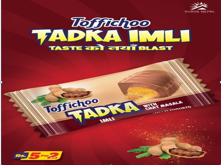 काठमाडौं । नेपालकै अग्रणी व्यवसायिक संस्था, सूर्य नेपाल प्रा. लि. ले आफ्नो कन्फेक्सनरी ब्राण्ड Toffichoo अन्तर्गत नयाँ टफी “Tadka Imli, “Taste को नयाँ blast” को नारा सहित बजारमा सार्वजनिक गरेको छ ।